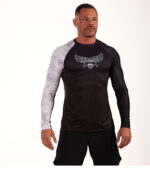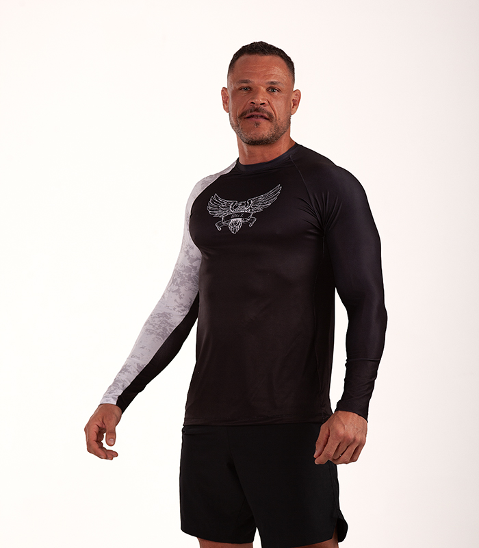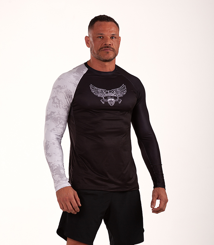 Camisa de compressão precisa desenvolvida para maximizar o desempenho durante treinos e lutas de jiu-jitsu e esportes de combate.